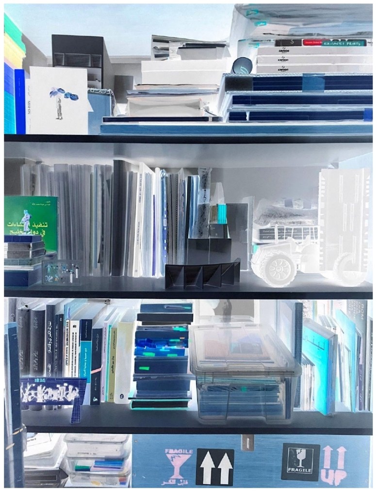 At age of 10, I moved with my family from Kuwait to Jordan. Palestine, Egypt, Syria and the US became closer key places (not necessarily physical but certainly cultural) in my upbringing. Iraq to me was a state at war all the time (from the images of desert battles and war prisoners that we saw on TV); but, from 1990, it became very influential to what and how we lived in Jordan, and so were the expats expelled from Kuwait. The peace agreements and the rise of gulf cultural values necessitated an unlearning and another re-visitation. We also moved between houses, schools and technologies. Each transformation required an adaptation of what we own, what we cherish, and the tone and medium in which we document (we had to transfer our moving images from super 8mm films to video tapes then to CDs and our feelings towards the events we were transferring were also changing). As I grow older, I re-meet the events of my life in a different way and in relation to other geographies. I learn (or forget) some details or become unsure of how to deal with aspects related to these events that I could only see or learn in retrospect. I think of the seepages, where these details and their materials (of books, images, songs, anger, and other) have leaked through. My archive is an attempt to deal with seepages, of those that evaded my attention or ran parallel to it. I realize and react to the scarcity and fragility of what could detail these histories to us, and so my archive is obsessed with collecting placeholders: as many as possible from the Arabic Soviet (children) books because there was a vague relationship to Soviet culture in the places I grew up in compared to the experience of my peers in neighboring cities, but I also collect an Arabized Swedish series, Palestinian publishers’ children books, besides materials published by or on political prisoners (particularly Palestinian freedom fighters) writings in prison, or unofficial stamps issued in solidarity or depiction in artworks or songs that weren’t allowed to travel on cassettes or models of their figures or literature related to them or to local (or art / hand drawn) textbooks or materials on middle-class labour or communist parties or on lending skills to other countries. I also collect materials on construction and contractors in third world countries plus every book I find on architecture or contracting in modern Baghdad or on/from the writing of Saddam Hussein or Muammar Gadhafi, or the death of Gamal Abdel Nasser and literature by other presidents, as well as educational props, illustrated drawings, maps and anthologies marked with readers’ handwritings (found ones marked by Stuart Hall). Disappearing artifacts, tin soldiers, sets of figurines for models, varieties of palm trees models and illustrations, lithography prints, books on printing, on old computers, and a variety of independent publishers’ work, and so on. This does not mean that I have the most extensive collections of what I mention, on the contrary, none of the collections that I have are comprehensive enough because they are bought or picked up in processes of researching, mostly parallel projects. I get these materials and organize them in my studio as multi-practical groups that speak to each other.